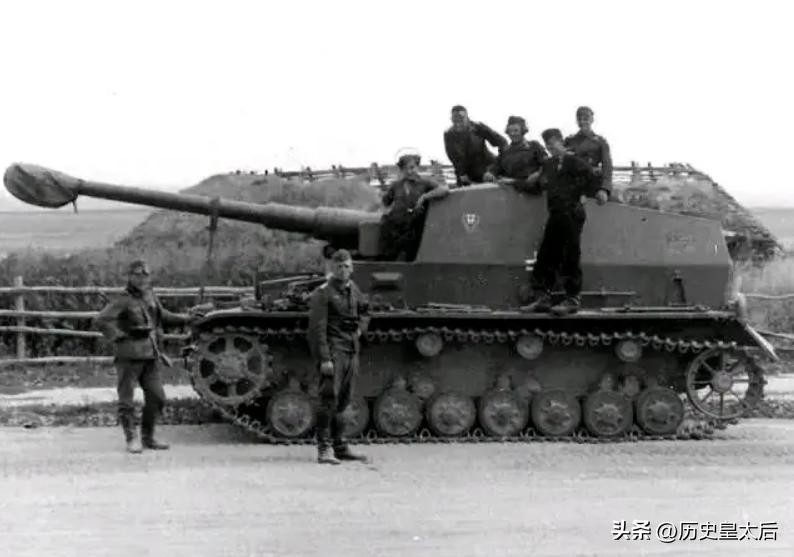 不过,可千万别觉得这玩意儿的防护能力就弱了,它的战斗室正面装甲足有50毫米厚,侧面也有20毫米厚,应对37毫米到45毫米的轻型反坦克炮问题不大,只要不被人侧击就没啥问题。唯一麻烦的是SFH-18型榴弹炮的后坐力过于巨大,榴弹炮需要在炮口配备一个双室制退器减缓后坐力。同时,这种坦克歼击车的射界也比较狭窄,左右射界各8度,上下俯仰角10-15度。这也算是坦克歼击车的老毛病了,无法胜任近距离战斗,只能选择蹲坑打敌人的冷炮黑枪。