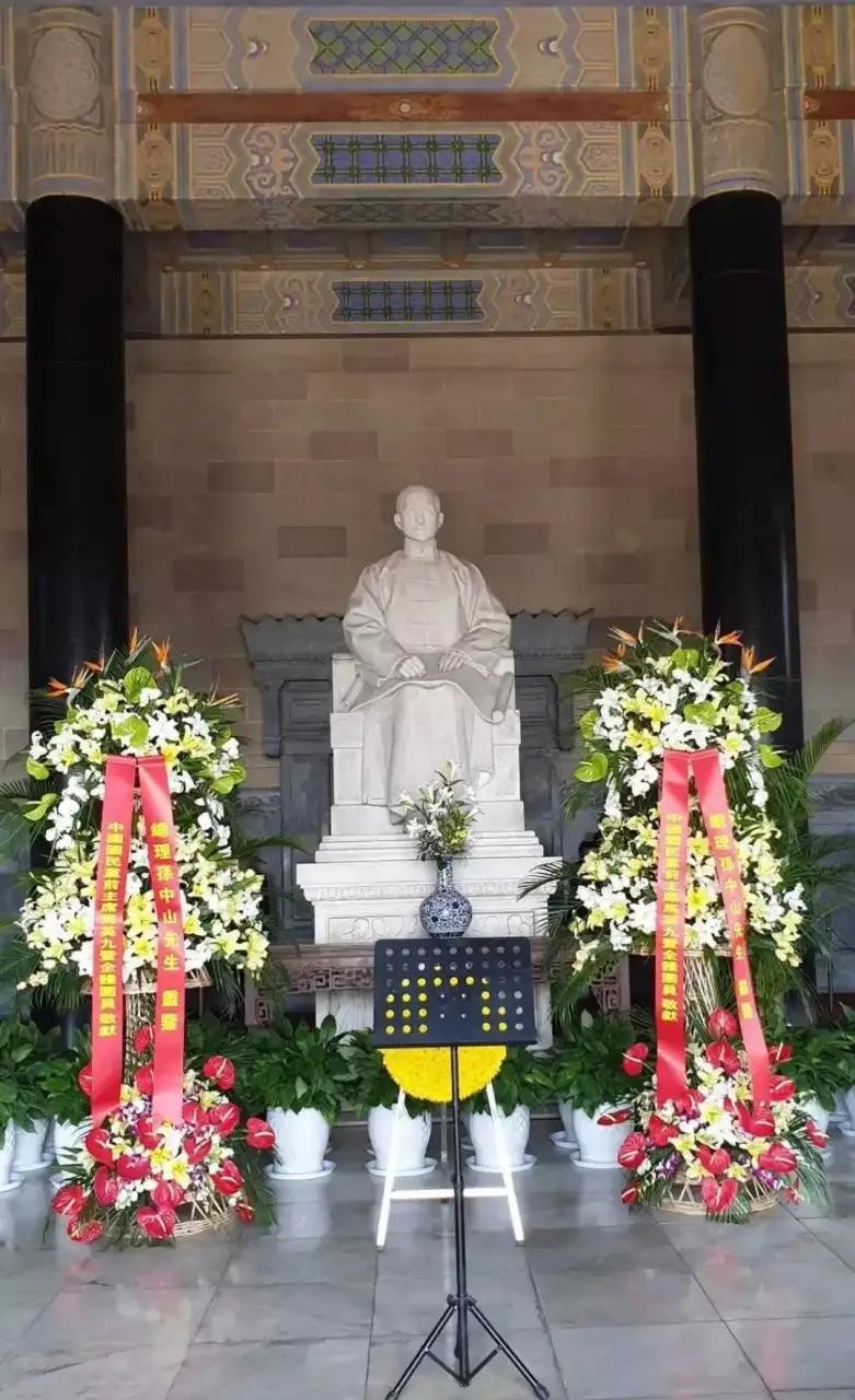 堂内孙中山大理石座像高4.6米,是世界著名雕刻家保罗、兰窦斯基的杰作(当时最高水平),祭堂东西护壁大理石刻着中山先生手书的遗著《建国大纲》和胡汉民等人书写的《总理遗嘱》。