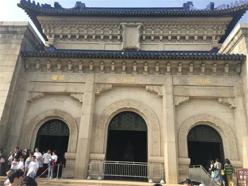 最高的平台有华表两座,后为祭堂。仿宫殿式的祭堂有三个拱门,门额上分别写着“民族”“民权”“民生”,门楣上刻着孙中山手书“天地正气”四个大字,表达了孙中山先生奋斗的理想。