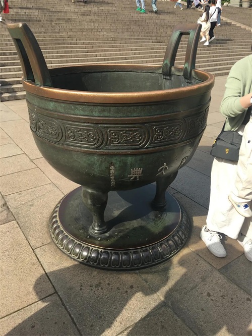 该铜鼎是上海市特别政府捐赠的,上面雕刻“奉安大典”四个字。