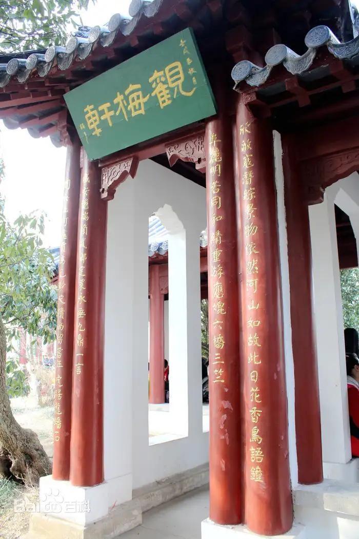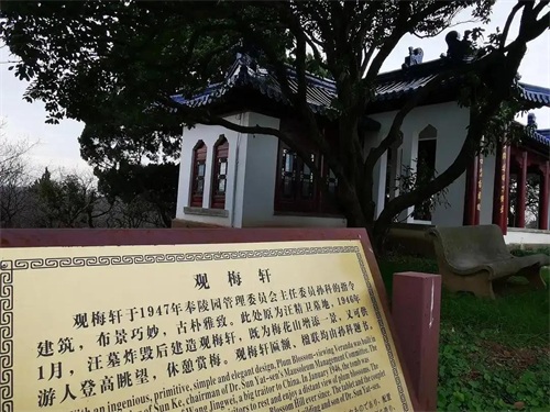 汪精卫墓旧址建立了新的廊亭式建筑“观梅轩”——姹紫嫣红傲立雪,梅山无辜埋佞臣。