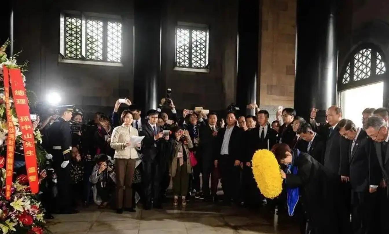 中国国民党前主席洪秀柱从台湾省来大陆南京中山陵拜谒国父,受到游客们热烈欢迎