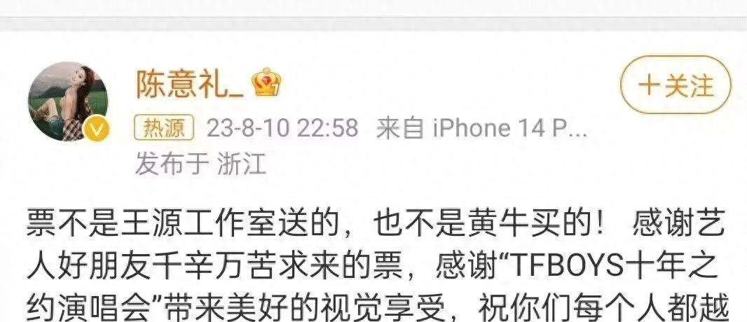 小怡和陈意礼迅速发布声明否认了这些猜测,表示门票是通过朋友获取的,与王源工作室无关。然而,粉丝们显然并不相信这一解释,三方粉丝在社交平台上展开激烈争论,将这一事件推向了热搜榜的前列。