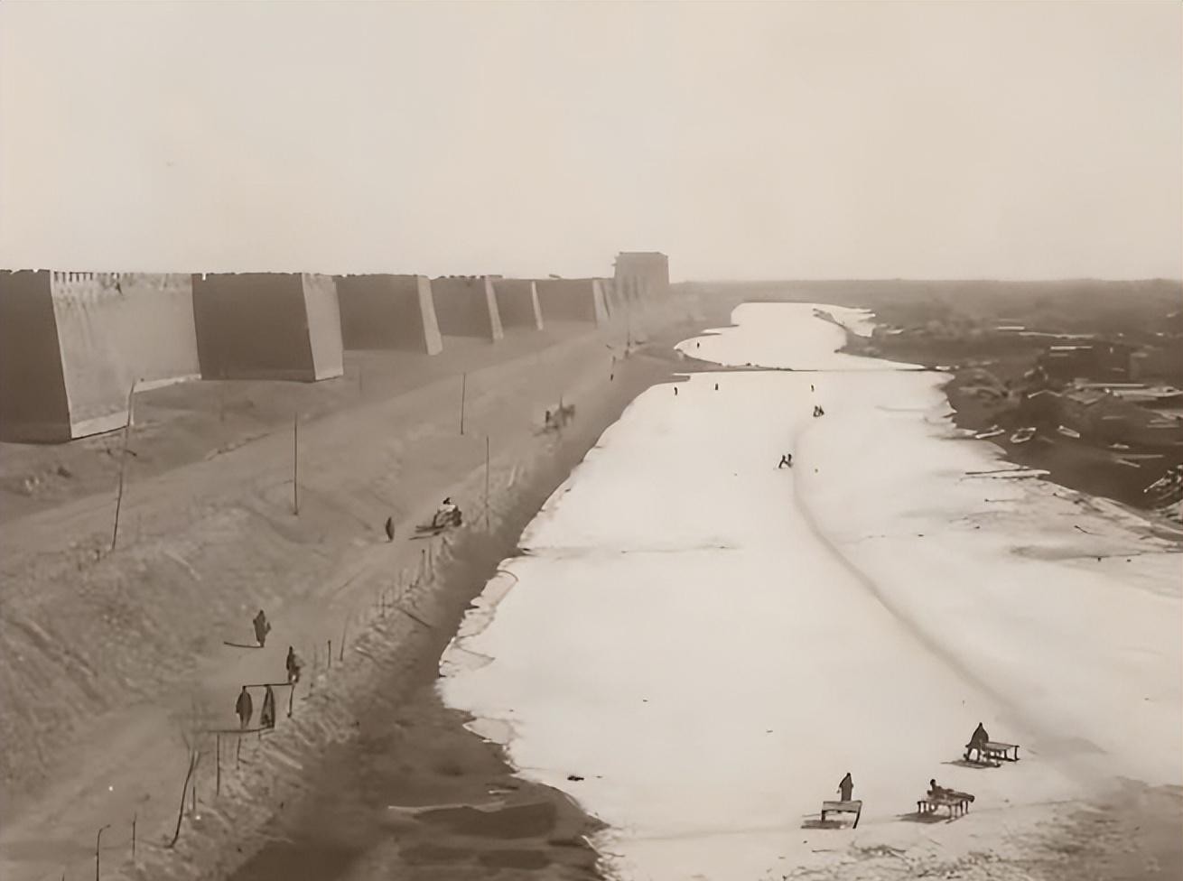 古老的城墙在一侧,绵延远去,气势恢宏。