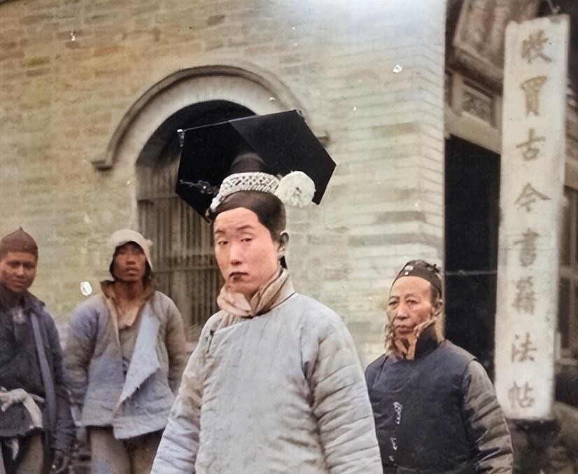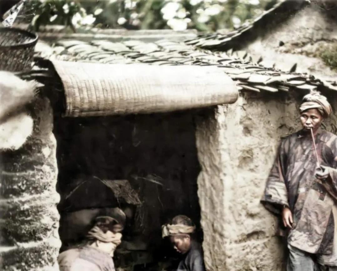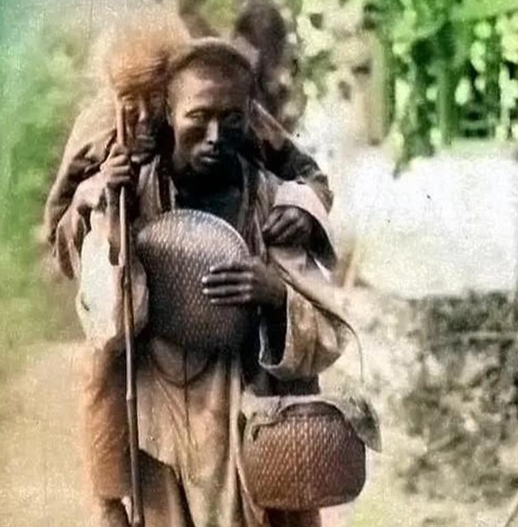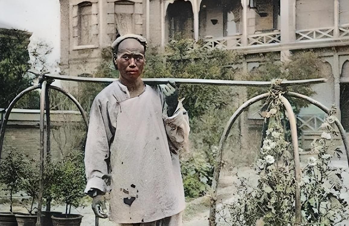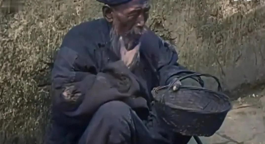 这一张是清朝时期罕见的由摄影师加以上彩色的照片,老伯的衣服补了又补了,戴着斗笠也是破破烂烂的,穷人看着很心酸,生活悲惨,衣服穿不暖。