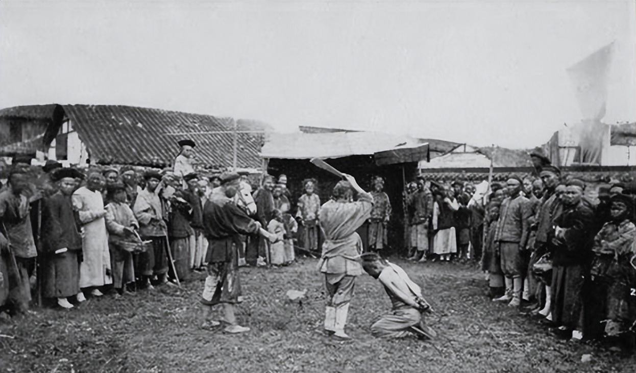 一个犯人正在被斩首,有的民众还在笑