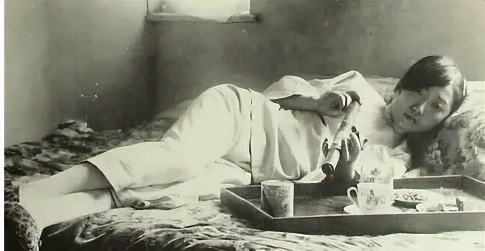 正在抽食鸦片的女子,双眼迷离,双脚放洋太太腿上很自在。很多女子买不起鸦片,便拿自己的身体去“换”