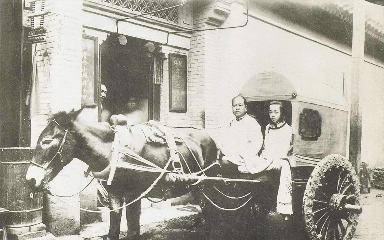 青楼女子在老妈子陪伴下外出应酬。