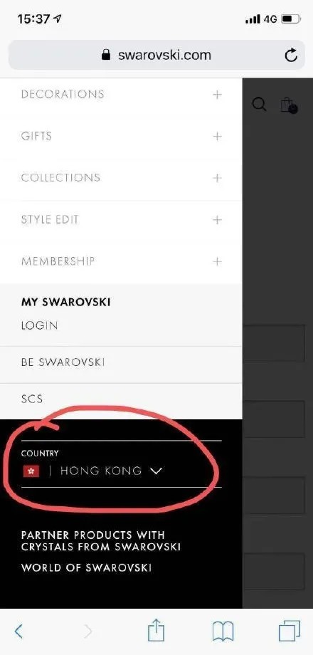 从杨幂宣布解约范思哲起,又有人发现施华洛世奇官网将香港设置为国家选项。