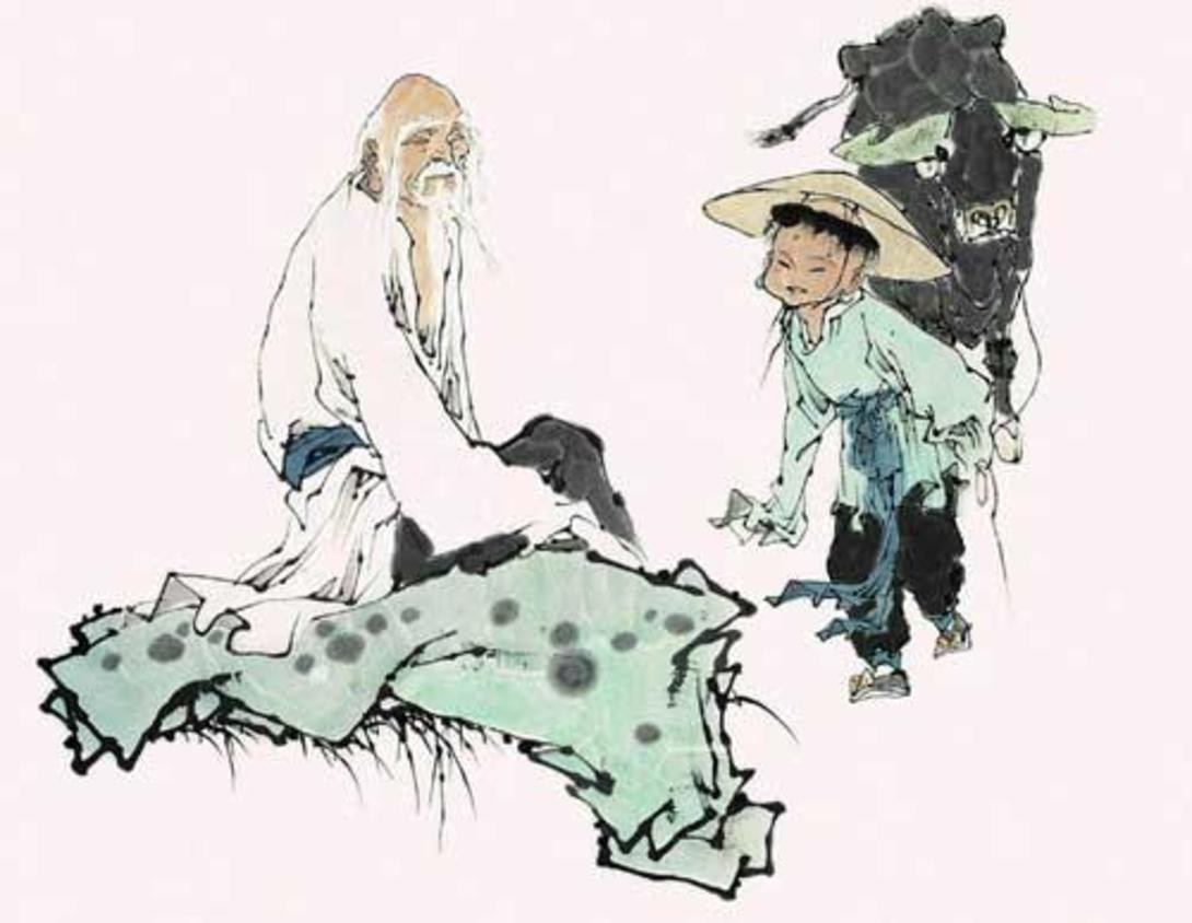大约周敬王三十五年(鲁哀公十年、公元前485年),老子看到周王朝越来越衰败,就离开故土,准备出函谷关去四处云游。把守函谷关的长官尹喜很敬佩老子,听说他来到函谷关,非常高兴。可是当他知道老子要出关去云游,又觉得很可惜,就想设法留住老子。于是,尹喜就对老子说:“先生想出关也可以,但是得留下一部著作。”老子听后,就在函谷关住了几天。几天后,他交给尹喜一篇五千字左右的著作,据说,这篇著作就是后来传世的《道德经》。然后,老子就骑着大青牛走了。相传归隐修炼于景室山(后更名为“老君山)”。