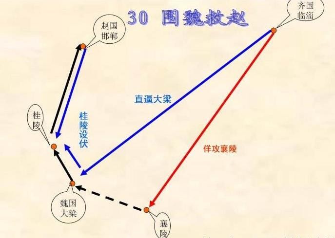 “击败魏军”只不过是眼前的直接目标,为的是“援救赵国”这个道义目标。然而齐国最根本的利益所在,是要获得军事优势以高枕无忧。为此,对齐国而言,赵魏相争,两败俱伤,才是最好的结果。计策的根本目的,就在于获取自身利益,或者损害对手利益。损人和利己,这两个在这个阳谋中是孙膑真是做到了。