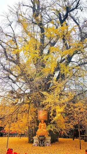 恰逢秋日,还可以欣赏到金灿灿的银杏树,莫不是一种佛缘,使你内心丰盈。感叹这人世间的美好,大自然的眷顾。