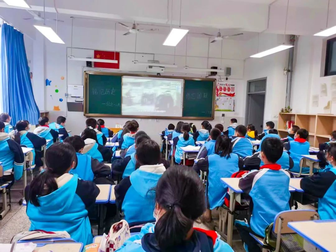 下午的主题班会上,各班班主任为学生讲述“一二九运动”的历史,通过观看爱国影片等多种形式演绎那段波澜壮阔的历史。同学们向逝去的先烈默哀,表达对先辈的深深敬意和自己的爱国主义情怀。线上线下,同学们都认真参与,缅怀先烈,铭记历史。