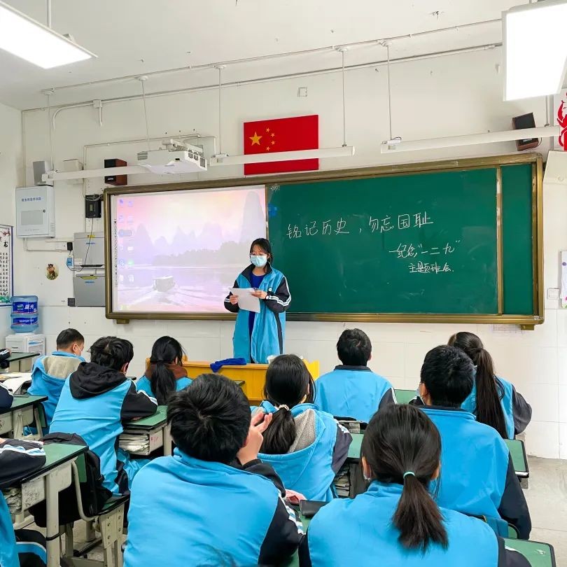 德育处兰老师在讲话中为同学们讲解了“12.9”历史,倡议同学们将爱国之心化作行动,努力学习,为报国、护国积蓄力量!
