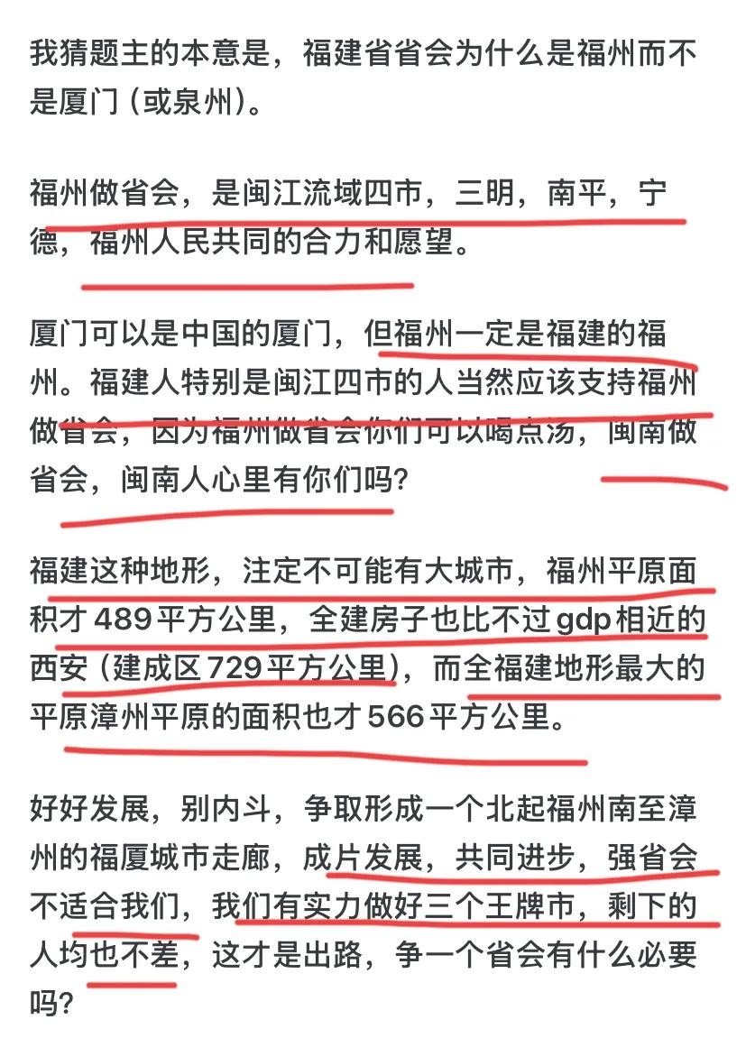 历史已经证明厦门强则厦门强,福州强则福建强,真让泉州厦门当省会,只是又一个湖北而已,最关键是泉州当省会叫泉建,厦门当省会叫厦建