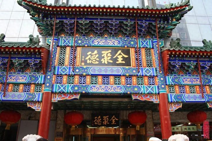 全聚德,中华老字号,创建于1864年(清朝同治三年)农历六月初六,全聚德在前门大街开了自己的第一家烤鸭铺子。历经几代创业拼搏获得了长足发展。1999年1月,“全聚德”被国家工商总局认定为“驰名商标”,是中国第一例服务类中国驰名商标。全聚德菜品经过不断创新发展,形成了以独具特色的全聚德烤鸭为龙头,集“全鸭席”和400多道特色菜品于一体的全聚德菜系,备受各国元首、政府官员、社会各界人士及国内外游客喜爱,被誉为“中华第一吃”。原中华人民共和国总理周恩来曾多次把全聚德“全鸭席”选为国宴。