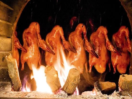 全聚德挂炉烤鸭技艺是北京市的汉族传统手工技艺。全聚德位于北京的中华著名老字号全聚德烤鸭店,始建于1864年,创办人是杨全仁。杨全仁雇佣山东名厨,用宫廷御膳房流传出来的挂炉烤鸭技术精制烤鸭,声誉日隆。挂炉烤鸭使用果木为燃料,在特制的烤炉中,以明火烤制而成。全聚德烤鸭,以其皮层香酥、肉质鲜嫩、色彩鲜亮、气味芳香的特色,蜚声中外,被列为首都特产之冠。