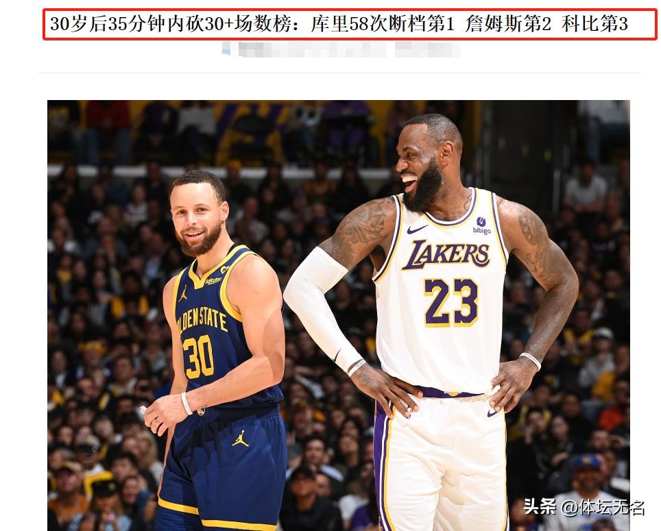 在这项历史纪录中,40岁詹姆斯在30岁以后,合计44次在35分钟内砍下30+,排在第2名。詹姆斯也非常厉害,从2003年进入联盟到2024年,已经打了22个赛季还在巅峰期,让人难以想象。排在第3名的是科比,在30岁以后,他曾25次在35分钟内砍下30+,不过不足库里的一半,乔治-格文也是25次,并列第3!库里、詹姆斯、科比三大球星,就是21世纪至今最具影响力的3名篮球运动员。