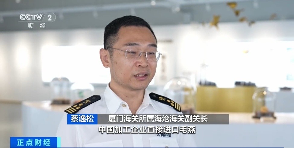 厦门海关所属海沧海关副关长 蔡逸松:中国加工企业直接进口毛燕,可以减少中间环节成本。在RCEP框架下,中国与东盟燕窝贸易关税已经降为零,毛燕运输成本大幅降低、通关效率显著提升,可以促使终端消费市场价格更加优惠,让高品质燕窝以更亲民的价格走进千家万户。