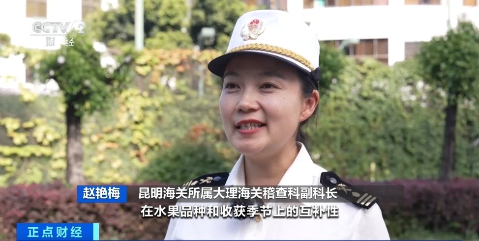 昆明海关所属大理海关稽查科副科长 赵艳梅:云南与东盟国家在水果品种和收获季节上的互补性,推动了云南特色水果的出口增长。比如大理的葡萄、柑橘、苹果、鲜枣等等,都出口到了泰国、越南、新加坡等东盟国家。