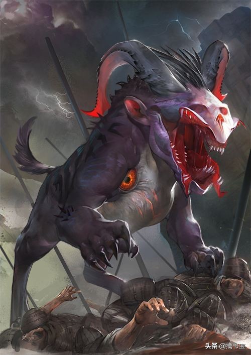 梼杌是生活在偏远西方的怪物,它体格像老虎而毛类犬,毛很长,脸有点像人,腿有点像老虎,嘴巴长有像野猪一样的獠牙,尾长丈八尺,在西方称霸,能斗不退。