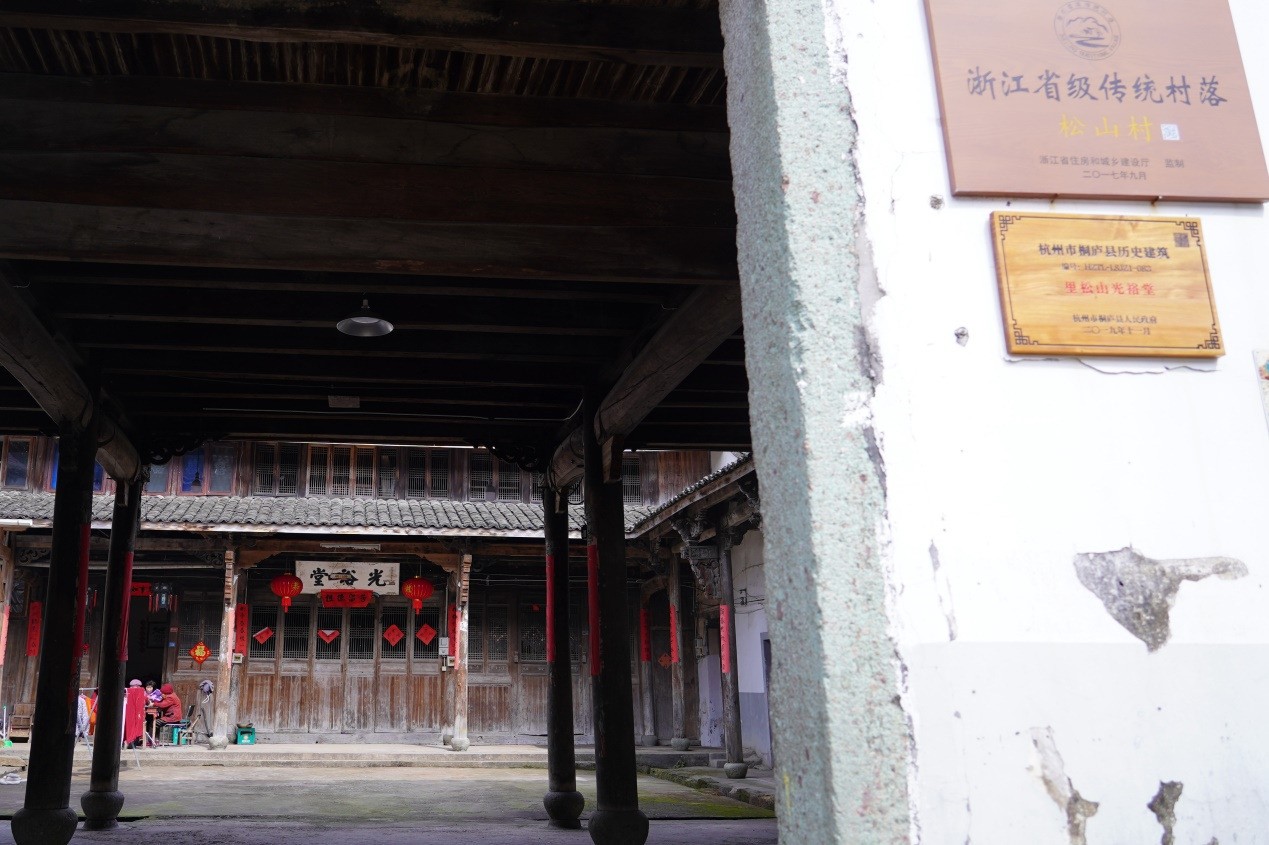 新合乡是浙江省革命老区,地处桐庐东南部山区,境内崇山峻岭,绵延起伏。山岭曾阻隔新合与外界的联系,也让这片红色热土保留了众多的“老房子”,全乡在册历史建筑15处,均建于清代。松山村作为一个千年古村,村里聚集了光裕堂、合德堂、咸正堂、嵩山庵等4处历史建筑。