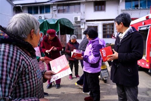 向村民发放《火场逃生自救手册》