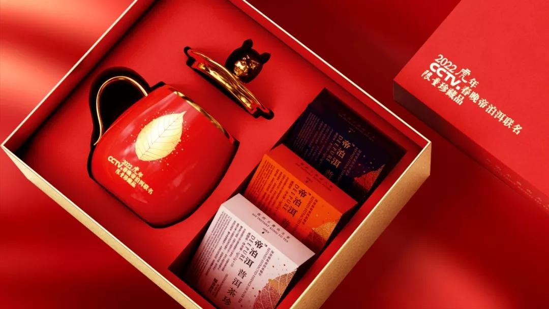2021年11月26日,由央视和帝泊洱联合推出的“2022年虎年CCTV春晚联名限量珍藏品”茶礼即将上市。据了解,帝泊洱已经连续五年入选央视品牌强国工程,这也是春晚举办40年来首次推出合作联名茶礼。
