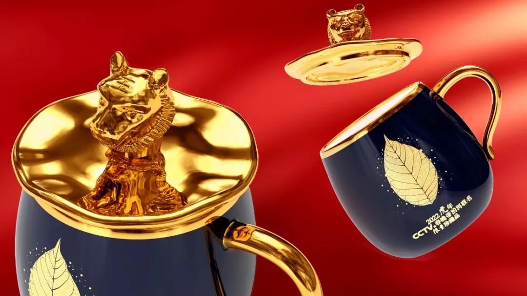 该礼盒整体风格为金红配色配有标志性的帝泊洱普洱茶叶元素,大气典雅与春晚喜庆的气氛相得益彰。包含甘醇、陈皮、糯香3种口味共30支春晚特制帝泊洱普洱茶珍,和一只设计灵感来源于圆明园的镀金虎首如意杯。杯壁外侧有金色春晚标识,其杯盖上虎首的灵感来源于“十二生肖兽首”元素,杯身通体圆润饱满与虎首盖底托的结合,又好似一枚柿子。因“柿”与“事”谐音,寓意“事事如意”的新年祝愿。