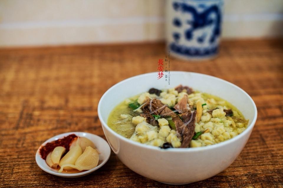 羊肉泡馍是特色西安小吃,网上有很多推荐。我去的是老米家,他们家生意不错,服务热情,味道正宗。里面的小哥可以端着四五碗在楼上楼下穿行,用着上扬的腔调叫号。店门口还有凉皮销售。