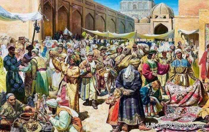 西突厥汗国直接吞掉了“大城四十,城堡千余”的安国,整个国家由突厥特勤王子统治;和李白渊源极深的碎叶地区西突厥从石国手中抢来的,突厥铁骑杀了该国君主,鹊巢鸠占直接夺取了碎叶地区。九姓胡中兵力最强的康国( “大城三十,城堡三百”)盛产名马,还有花剌子模和曹国(曹国国君就是两个小弟,不容易一口吞下,西突厥王室就两次将自家公主嫁到康国去,对自己的亲戚予取予夺。另一个西域著名国度高昌也和西突厥人联姻,突厥可汗用一个公主嫁了这个国家三代君王。西突厥汗国用粟特人当使者、当财富搬运工,从整个西域征召士兵和财物,得到了大量丝绸之路上的利益,小日子过得很爽。