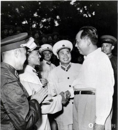 1958年8月毛主席接见济南军区军以上领导干部。图为毛主席与李水清少将握手。