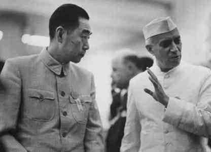 (周恩来)左(尼赫鲁)右