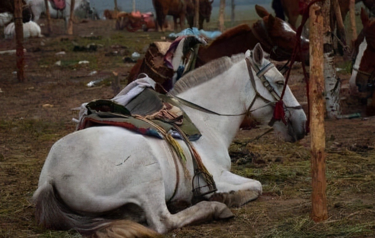 在如此凄惨的情况下,没挨多久,白马就凄惨地死在了马棚里。