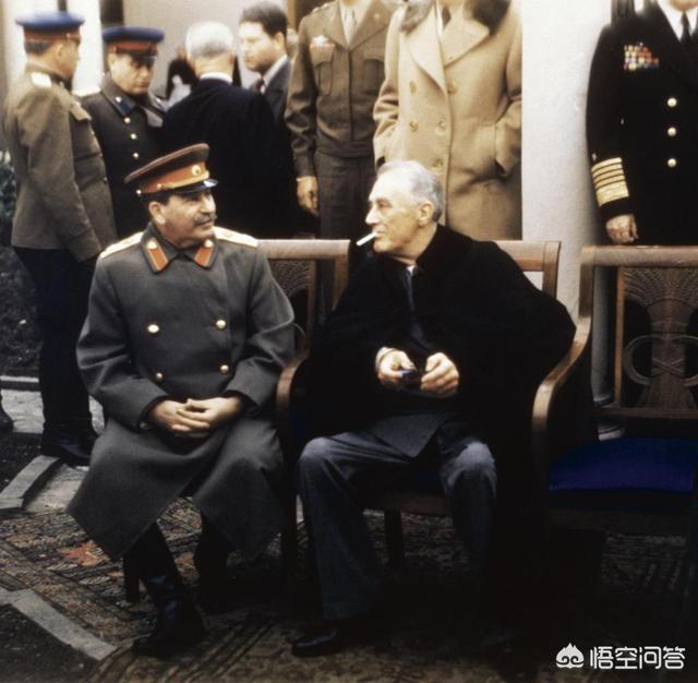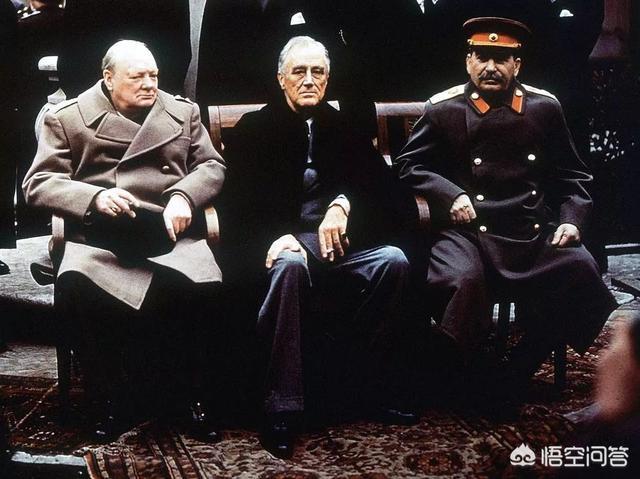 这是一张1945年2月份雅尔塔会议时期的照片,照片上的三巨头,就是英美苏三国当时的领导人。值得一提的是,当时的英国领导人还是丘吉尔。