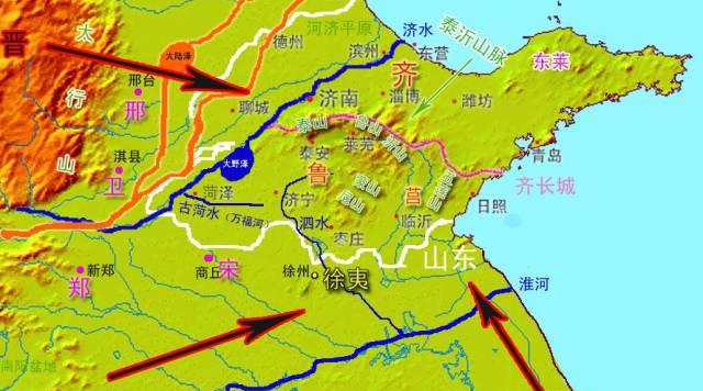 只可惜对这条战略通道有所企图的并非只有齐鲁两国,在其后的春秋争霸过程中,我们会看到来自江淮地区的诸侯国也一次又一次的希望通过这条战略通道进入山东半岛的核心地区。