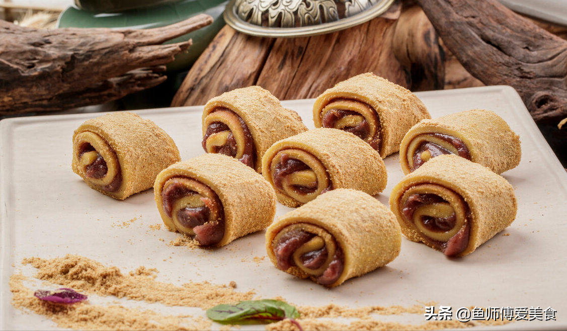 驴打滚是老北京、天津及东北地区的传统豆面糕点小吃,正月初六有品尝驴打滚的说法,因为旧时的民间,有个典故叫“刘海戏金蟾、步步钓金钱”。