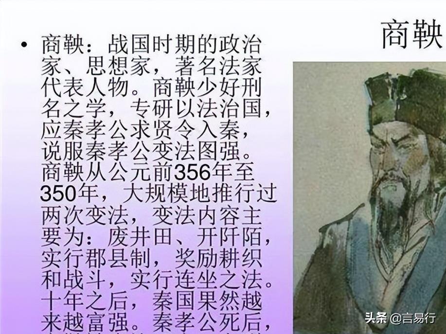 商鞅,是位策略家更是位谋略家,同时,也是法家的代表人物。他是位卓越又不可多得的人才。