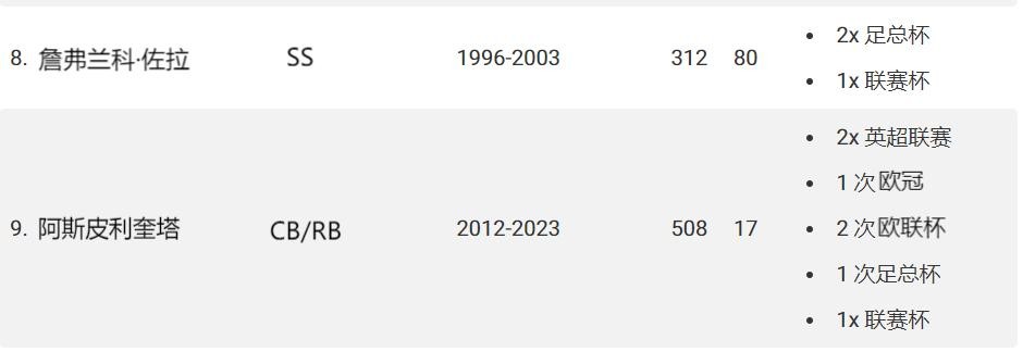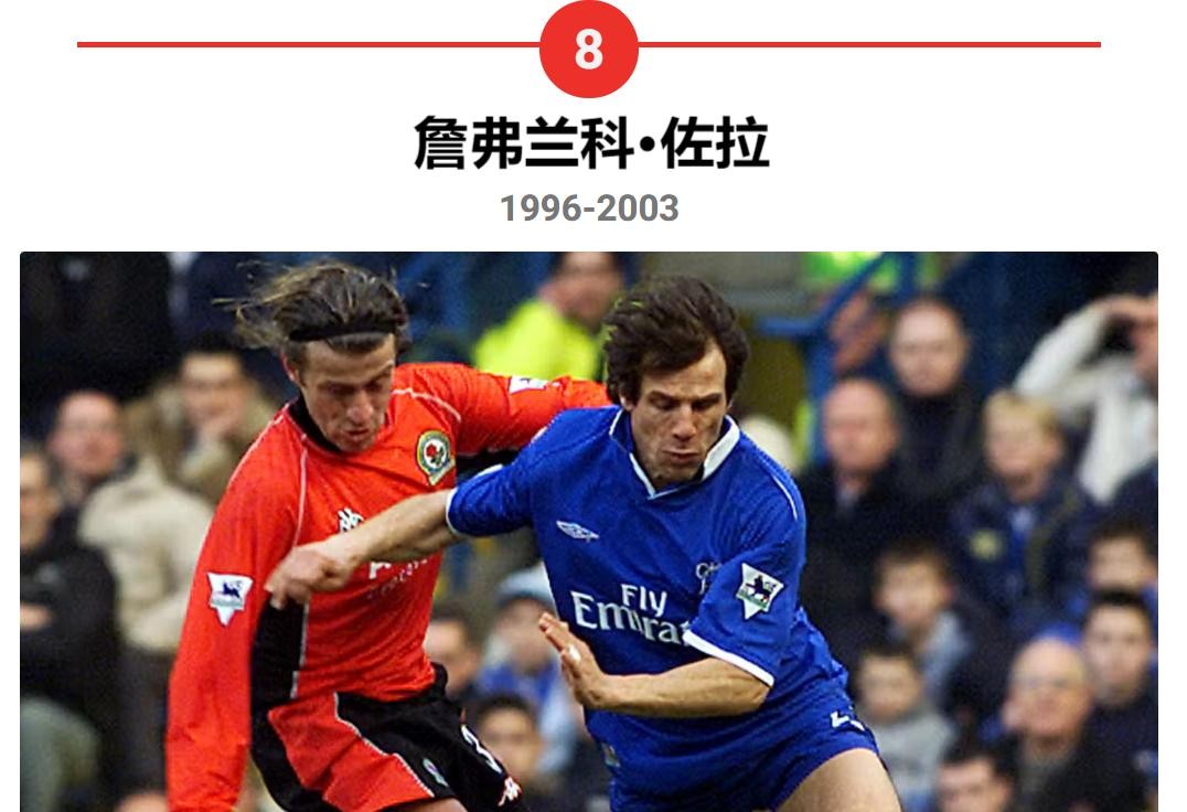 佐拉在这个名单上有些特别,因为当佐拉于1996年转会切尔西时,他并不是一名新秀。相反,他是一名经验丰富的老将,在加盟蓝军之前的12年里,他已经在自己的祖国意大利出场超过300场。