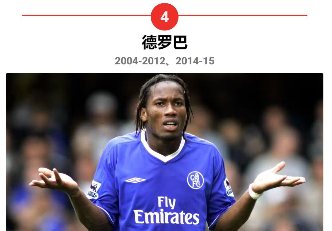 这位科特迪瓦球星曾两度效力切尔西,第一次离开切尔西后,德罗巴曾在中超和土耳其短暂效力,2014年他重返切尔西效力一个赛季,在28场比赛中攻入4球,为切尔西再次赢得联赛冠军。