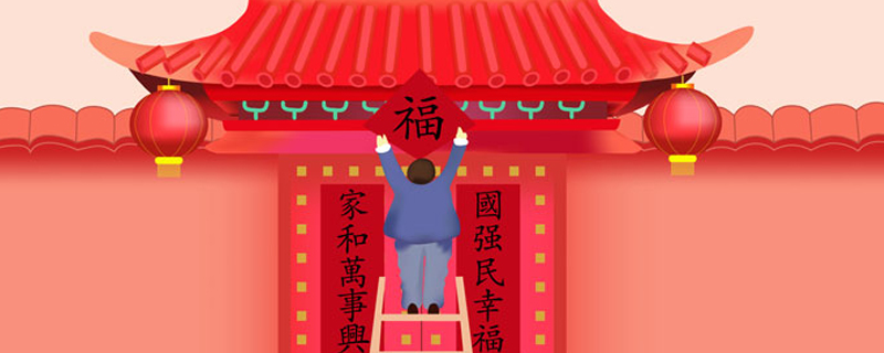 45、上联:春满人间欢歌阵阵下联:福临门第喜气洋洋【横批】:五福四海