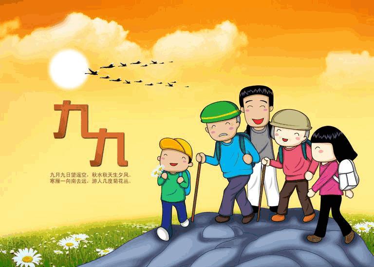 我们的祖先认为“九九重阳”是一个特别吉祥的日子。所以在民间,人们选择在重阳节这天,到野外登高望远,到田间秋游赏花,开堂祭祖等活动。而这些习俗,一直延续至今。