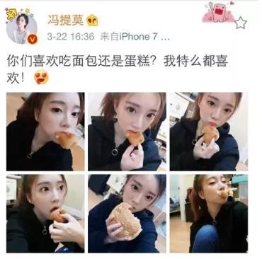 下面这张图是流传最广的一张黑图,这张黑图是被一名粉丝故意在面包上打上了马赛克逗大家开心,不过提莫看到以后还回复了这位粉丝,大家都当成一场玩笑。但是后来就被很多有心之人传开,导致很多不明白真相的观众们也跟风喷她,其实这张图一直都在冯提莫的微博里,很多人借题发挥选择视而不见。
