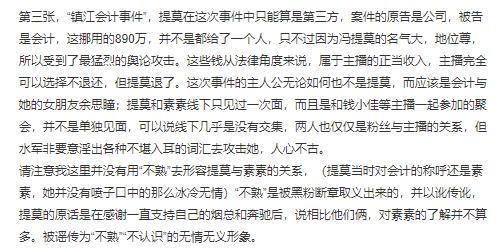 还有就是“会计门”事件,冯提莫的“土豪粉丝”挪用公款给冯提莫刷礼物。按理说这笔钱是冯提莫的正当收入,但是事后还是退换给了当事人。还有人说两人单独见面,其实是很多人参加的聚餐。而这名会计口中说的发生不正当关系,想必也是网友们的捕风捉影编造出来的。