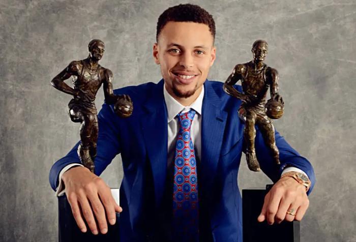 2012-2017年,这中间5个赛季,库里的出勤率高达96.2%,单赛季最低也只缺席5场比赛。2014-15赛季,2015-16赛季,库里连续两个赛季获得常规赛MVP,而且库里还是NBA历史唯一一个全票的MVP得主(2016年,库里场均30.1分+5.4篮板+6.7助攻+2.1抢断,并且打破了单赛季三分纪录)。库里那一年单赛季投进402记三分(三分命中率45.4%),NBA历史第一,至今保持着第一,无人能破。