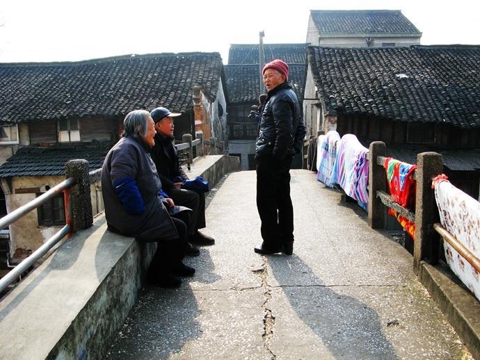 老年人在桥上晒太阳聊天