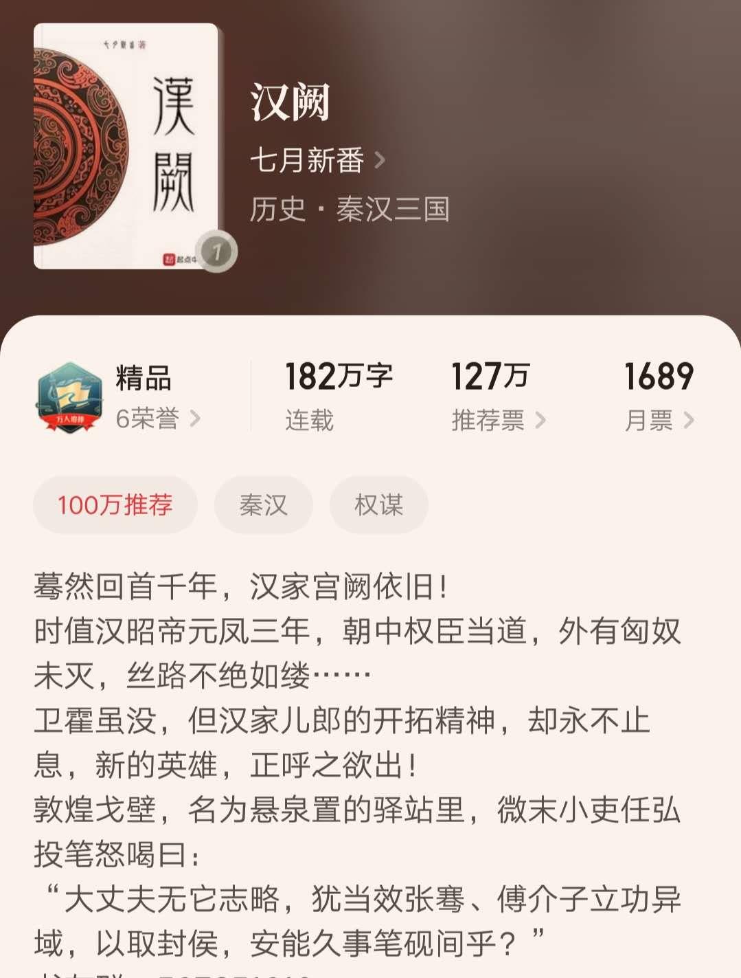 小说由一名敦煌小吏遭遇横祸开篇,回首千年汉家宫阙时那些雄浑的历史长歌,畅想汉家儿郎开疆固土时的豪情壮志,英雄出世不问因果,只问过程几何。