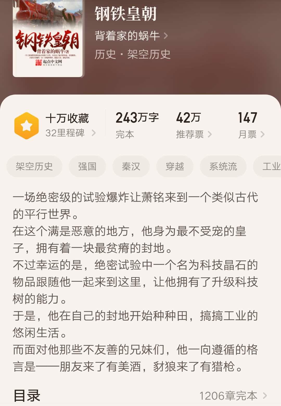 总之,这本科技流的架空历史文有着自己独特的科技树,剧情发展紧凑,逻辑合理,文笔有保证。而且目前已经完结,书荒的书友可以放心入坑了。