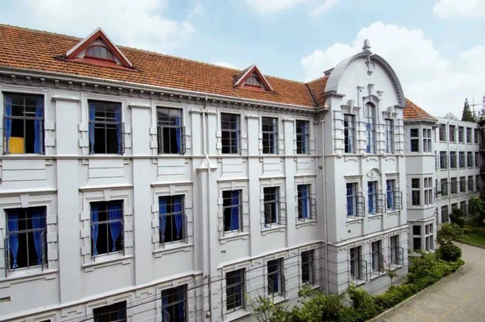 学校主楼砖混结构,坐北朝南,为晚期文艺复兴风格。主楼立面采用横向三段式构图,横向中央和两端凸出,比例和谐,局部呈巴洛克装饰。屋面为红平瓦,棚式老虎窗。外墙仿石饰面,平拱窗。