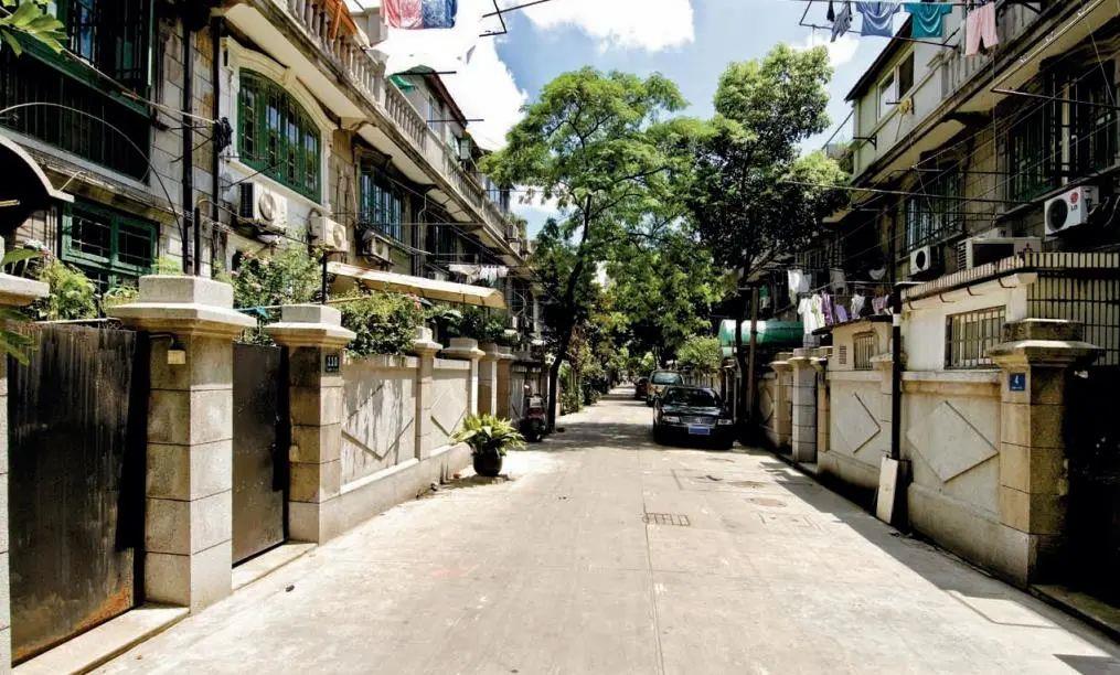 溧阳路沿线共有近50幢花园别墅,多建造于上世纪20、30年代,灰砖红瓦,英式风格。这些别墅多一栋两个门牌,从中轴线划开,住两户人家,类似如今的“双拼联体别墅”。